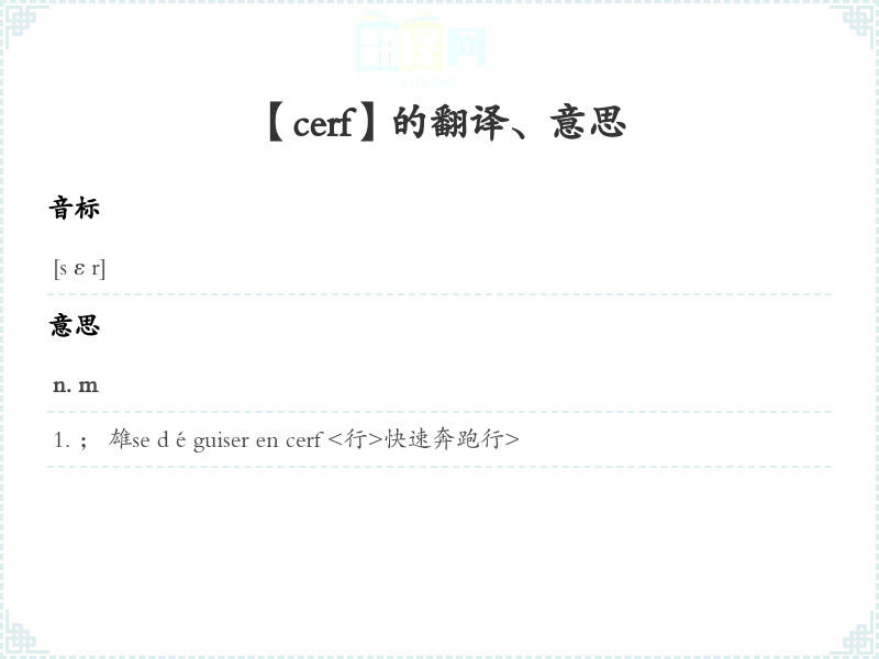 【cerf】 词源:、 派生:、 同音、近音词 联想词