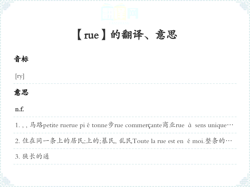 【rue】是什么意思、字义解释