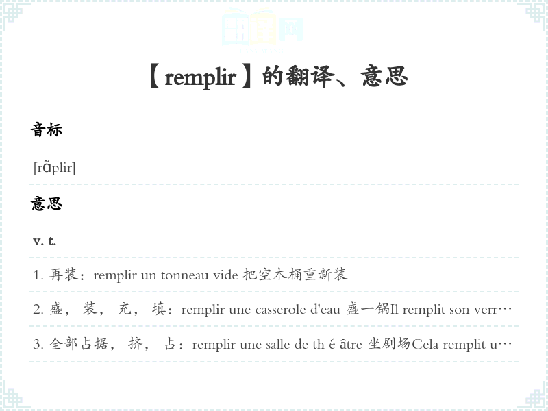 【remplir】是什么意思、字义解释