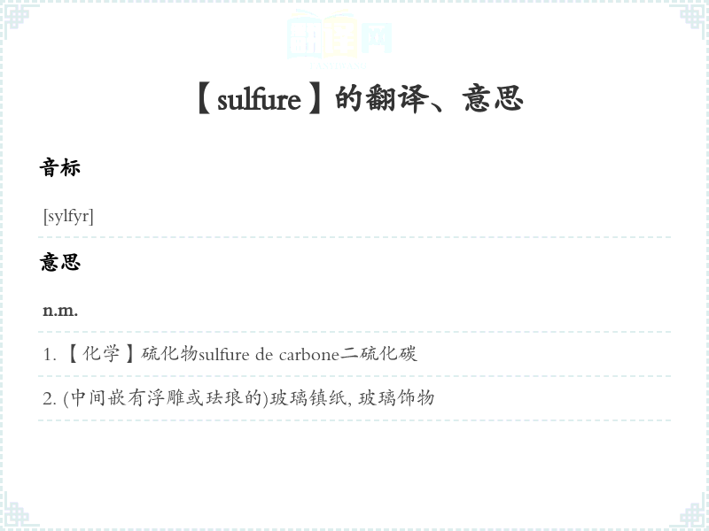 【sulfure】是什么意思、字义解释