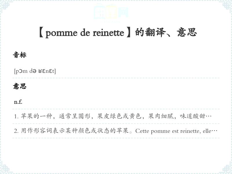 【pomme de reinette】是什么意思、字义解释