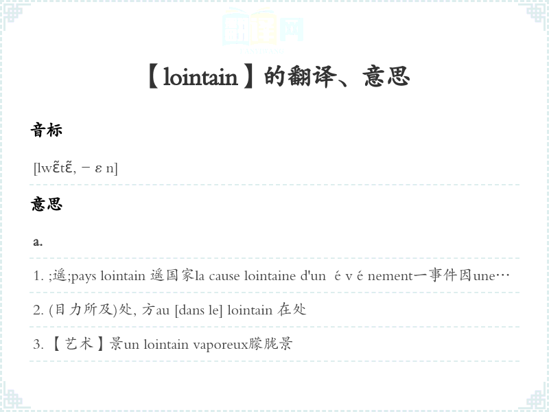 【lointain】是什么意思、字义解释