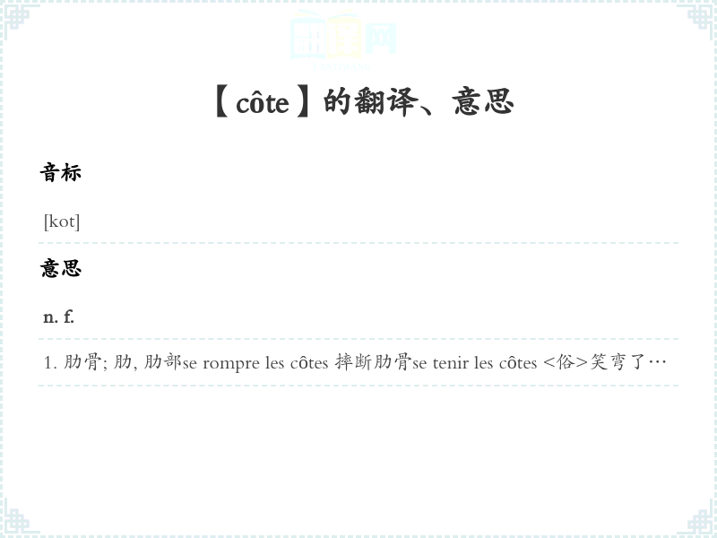 【côte】是什么意思、字义解释