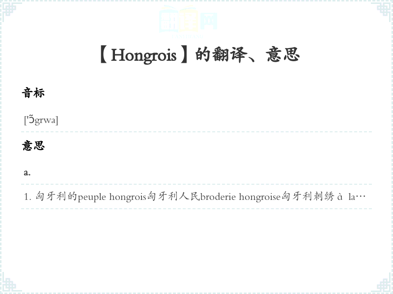 匈牙利的peuple hongrois匈牙利人民broderie hongroise匈牙利刺绣à la hongroise按匈牙利方式烹调