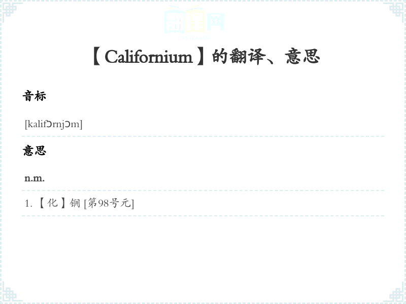 【Californium】是什么意思、字义解释