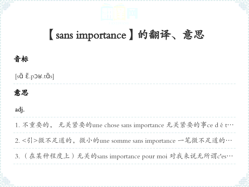 (在某种程度上)无关的sans importance pour moi 对我来说无所谓c'est sans importance ça 是没关系的