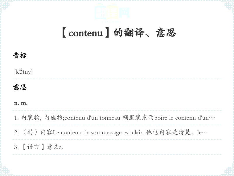 【contenu】是什么意思、字义解释