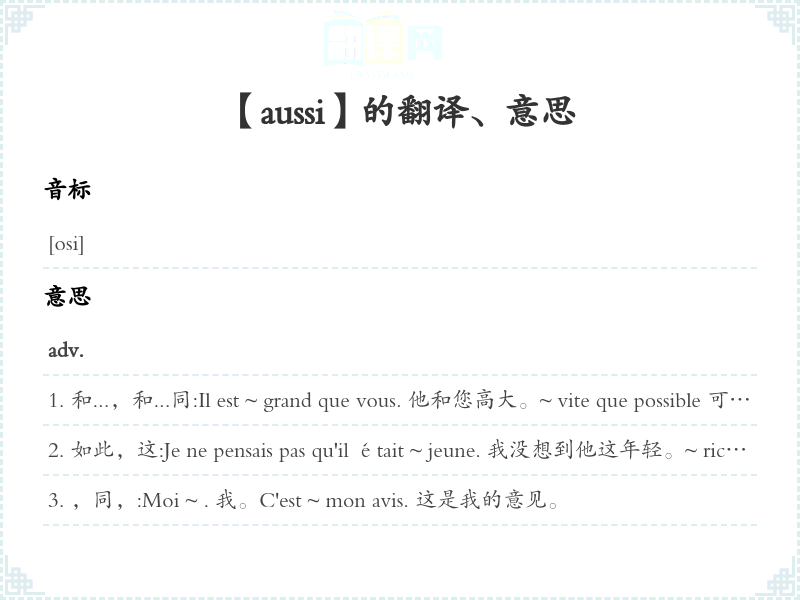 【aussi】 联想:、 近义词:、 反义词: 联想词