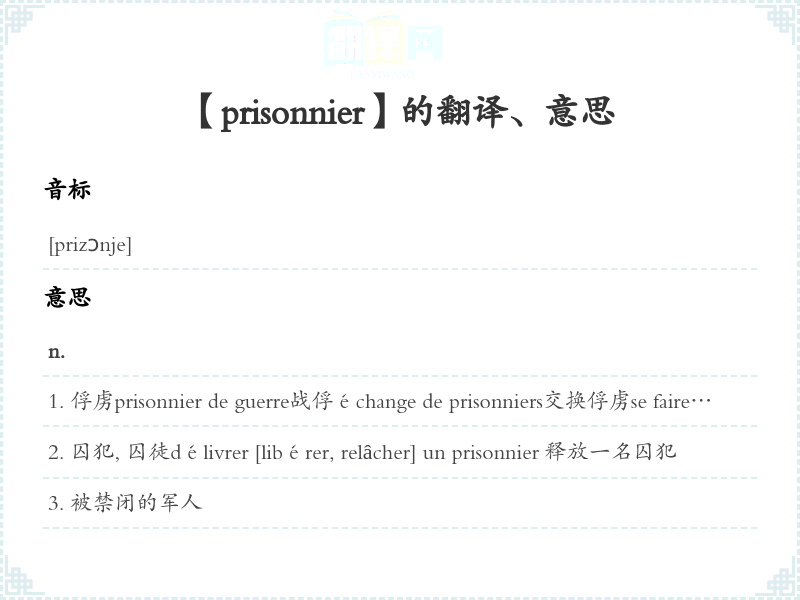 【prisonnier】是什么意思、字义解释