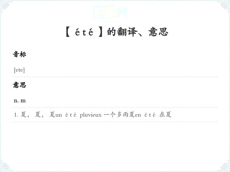 夏, 夏, 夏un été pluvieux 一个多雨夏en été 在夏