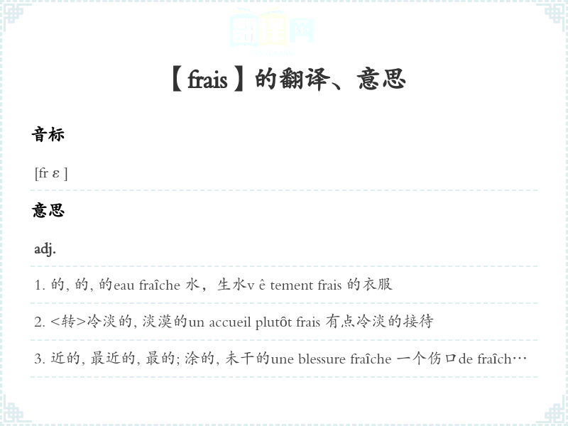 【frais】是什么意思、字义解释