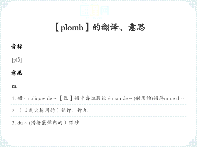 【plomb】是什么意思、字义解释