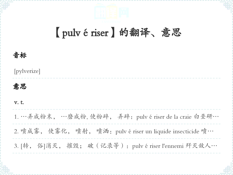 【pulvériser】是什么意思、字义解释