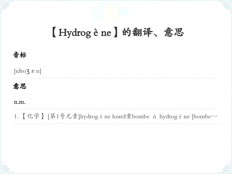 【Hydrogène】是什么意思、字义解释