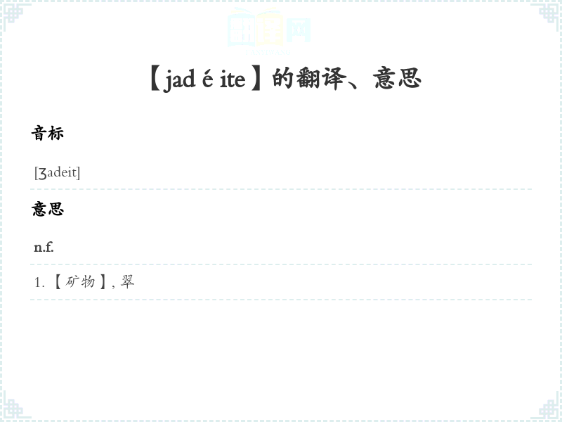 【jadéite】是什么意思、字义解释