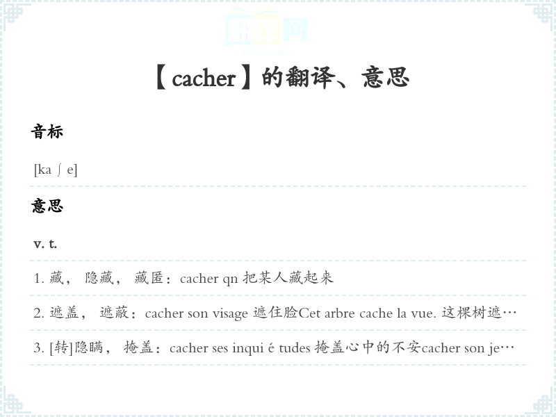 【cacher】是什么意思、字义解释