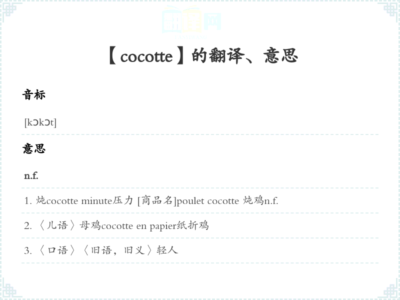 炖cocotte minute压力 [商品名]poulet cocotte 炖鸡n.f.