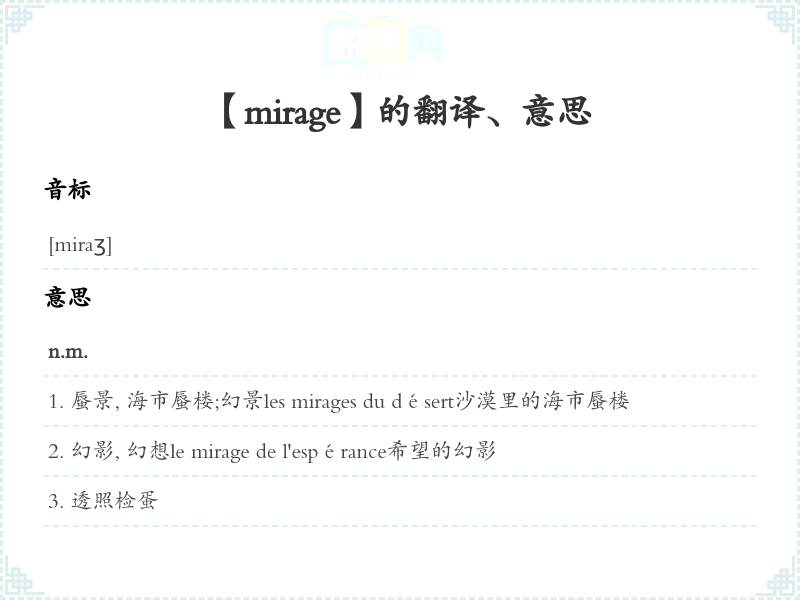 【mirage】是什么意思、字义解释