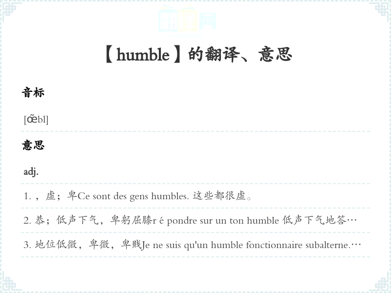 【humble】是什么意思、字义解释