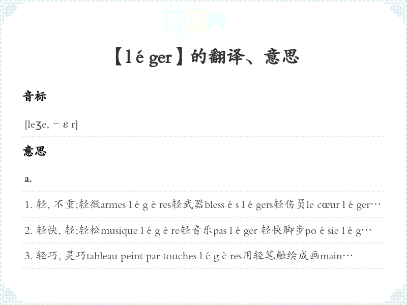 【léger】是什么意思、字义解释