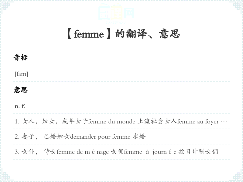 【femme】是什么意思、字义解释