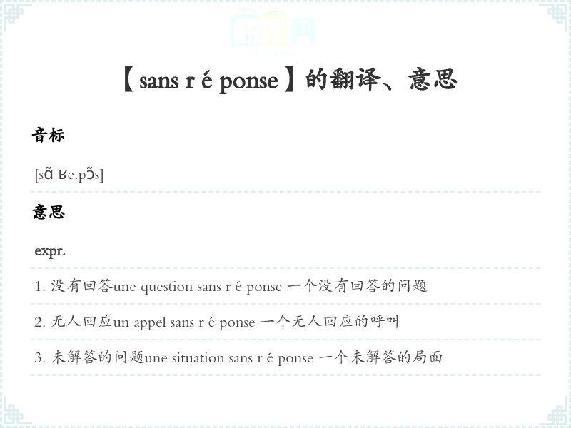 【sans réponse】是什么意思、字义解释