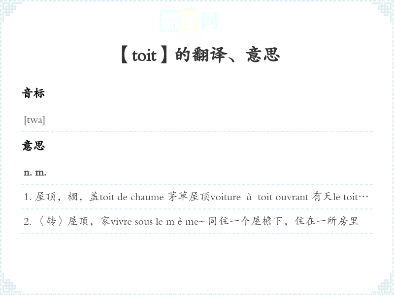 【toit】 名词变化:、 近义词:、 反义词: 联想词