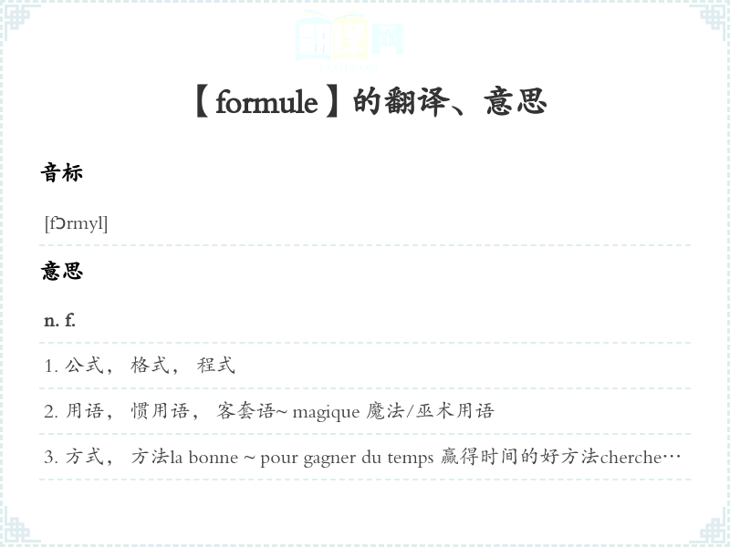 【formule】是什么意思、字义解释