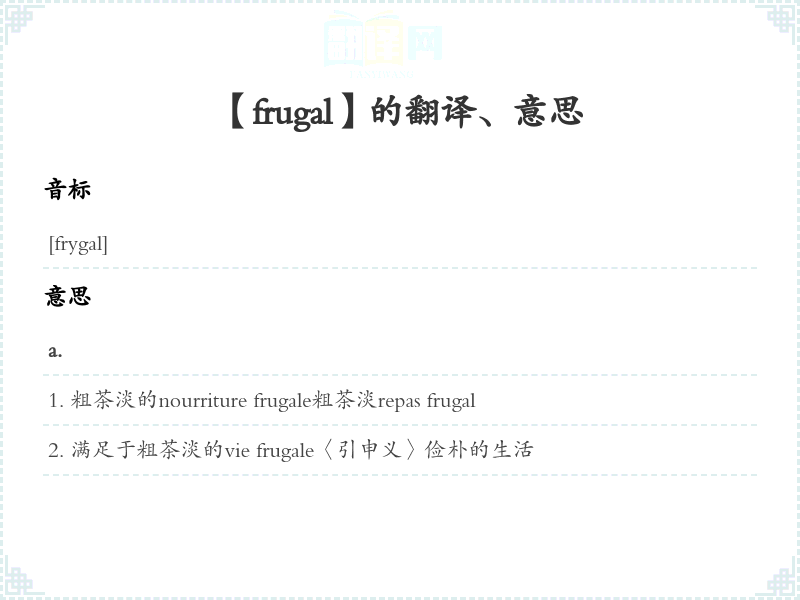 满足于粗茶淡的vie frugale〈引申义〉俭朴的生活