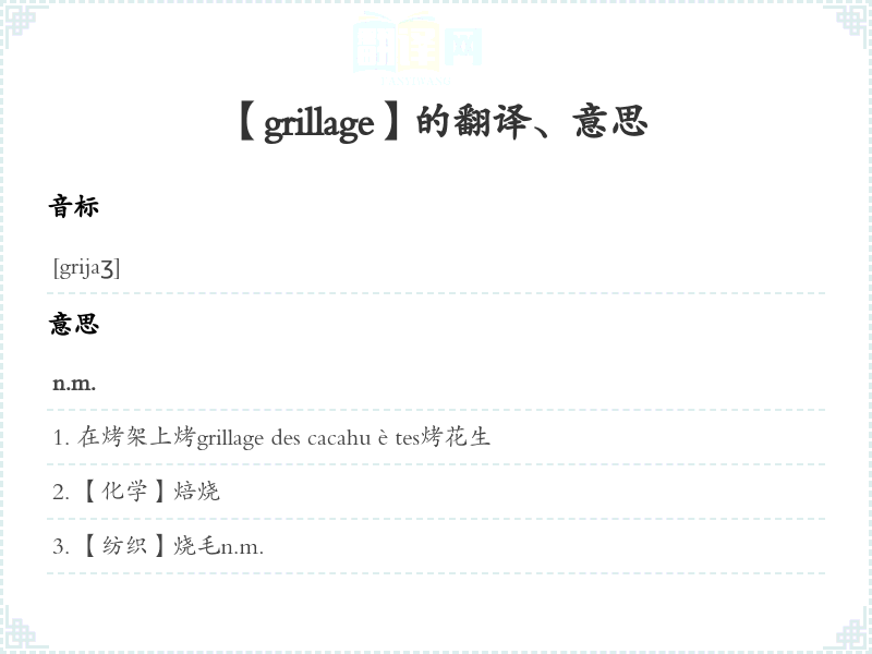 【建筑】铁丝网, 金属网;格床形基础jardins enclos d'un grillage 用铁栅栏围起来的花园
