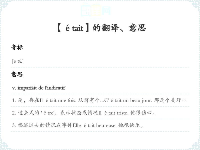 【était】 助记:、 词根:、 联想、 名词化:、 词化:、 形容词化:、 近义词、 反义词、 同音、近音词 联想词