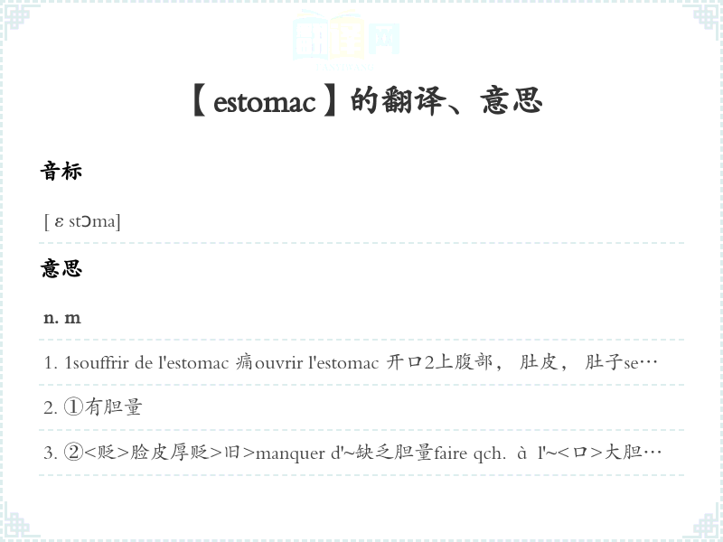 【estomac】是什么意思、字义解释