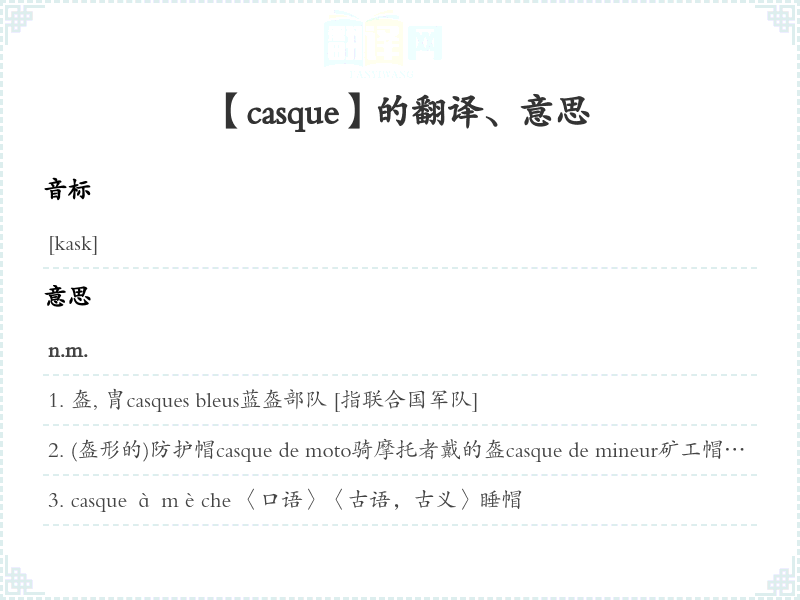 【casque】是什么意思、字义解释