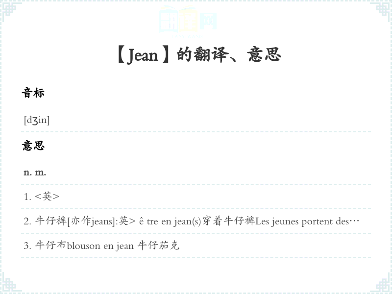 【Jean】是什么意思、字义解释