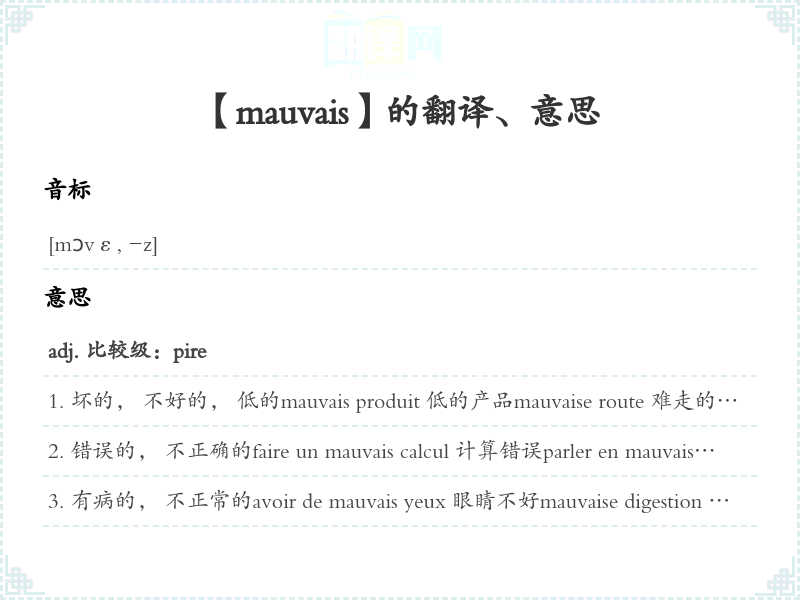 【mauvais】是什么意思、字义解释