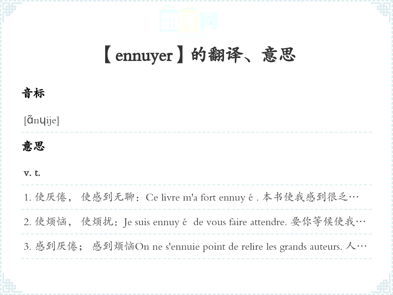 【ennuyer】是什么意思、字义解释