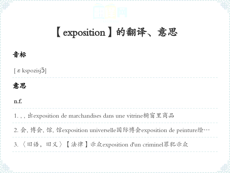【exposition】 近义词:、 反义词: 联想词