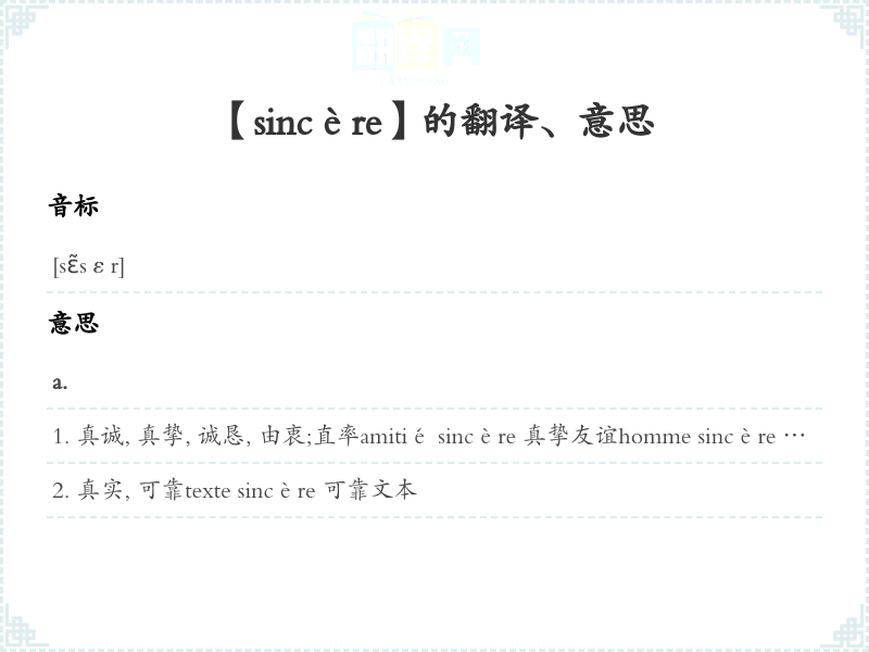 【sincère】是什么意思、字义解释