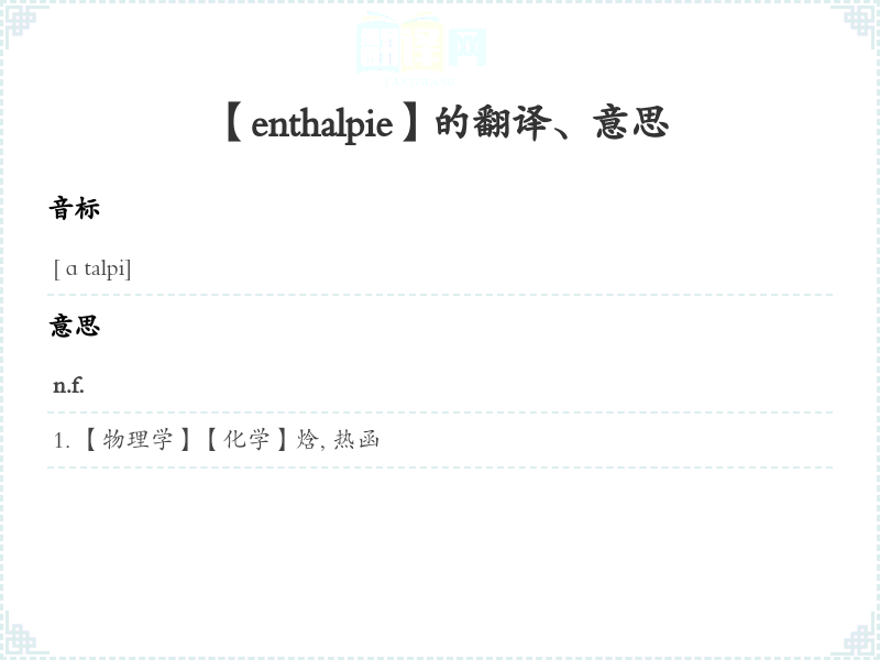 【enthalpie】是什么意思、字义解释