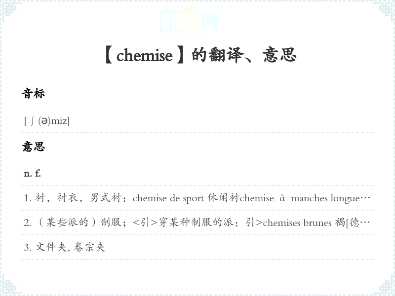 【chemise】是什么意思、字义解释