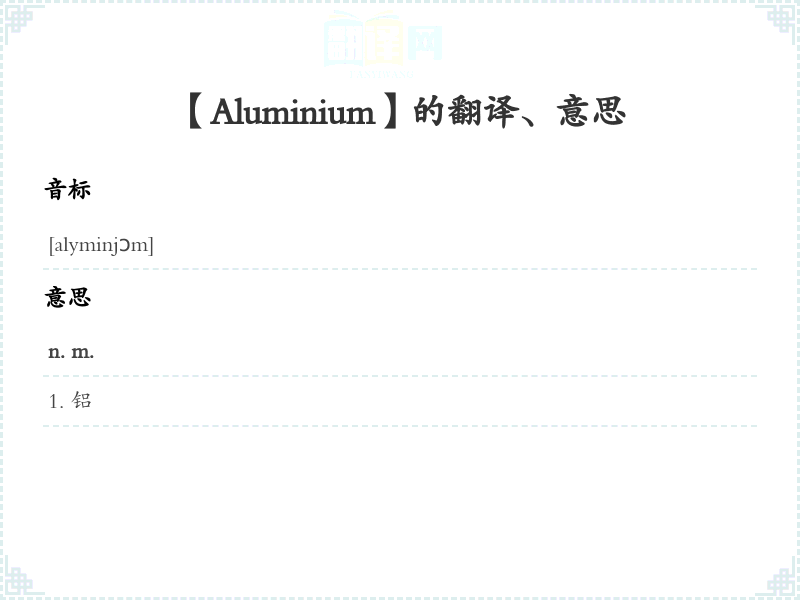【Aluminium】是什么意思、字义解释