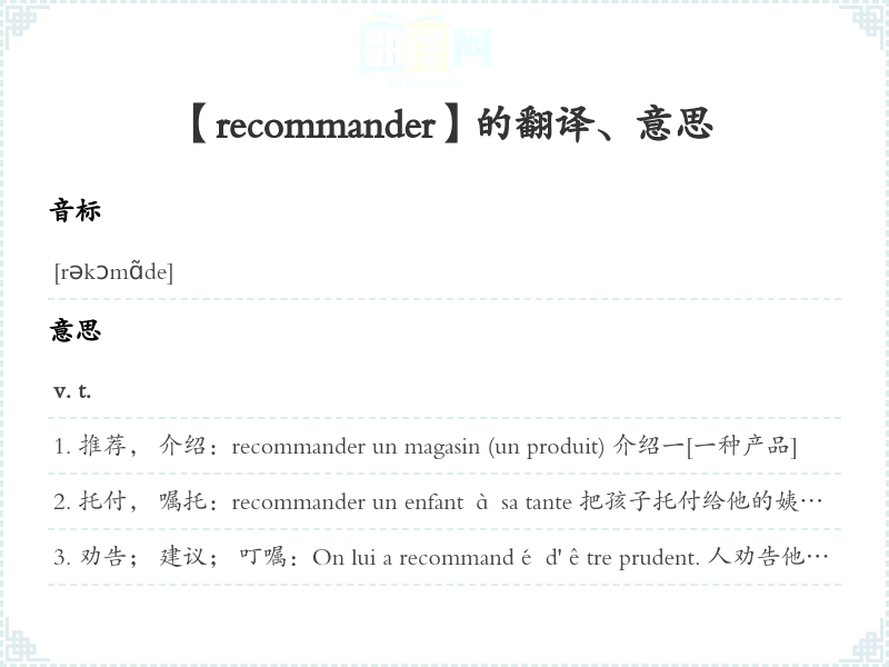 【recommander】是什么意思、字义解释