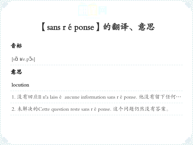 【sans réponse】是什么意思、字义解释