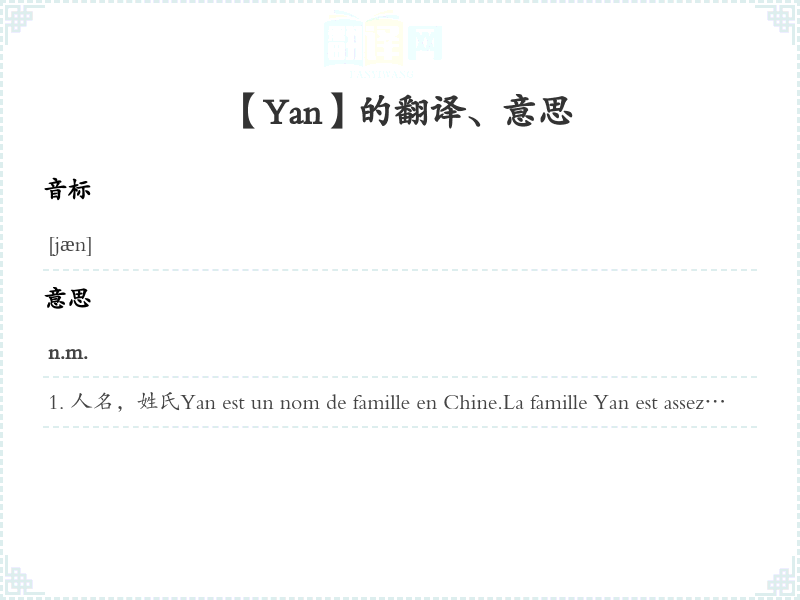 人名,姓氏Yan est un nom de famille en Chine.La famille Yan est assez répandue en Chine.