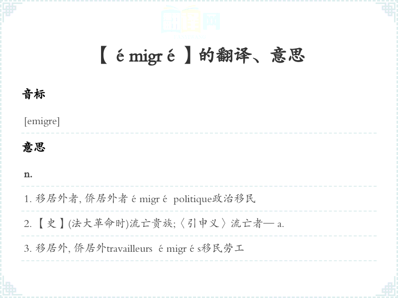 【émigré】是什么意思、字义解释