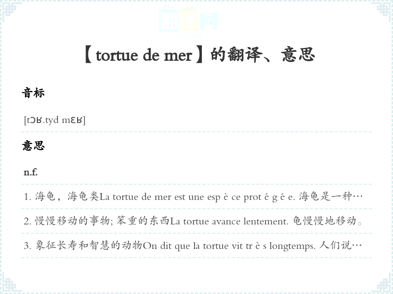 【tortue de mer】是什么意思、字义解释