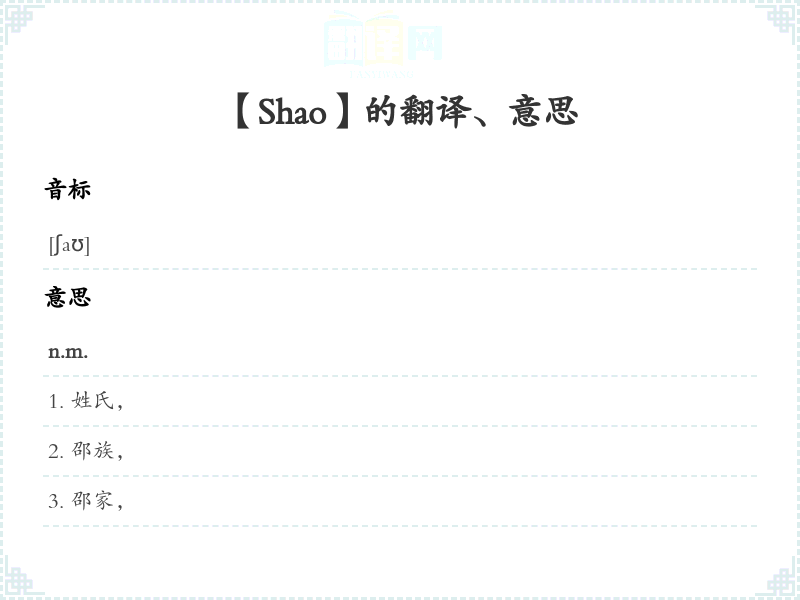 【Shao】是什么意思、字义解释