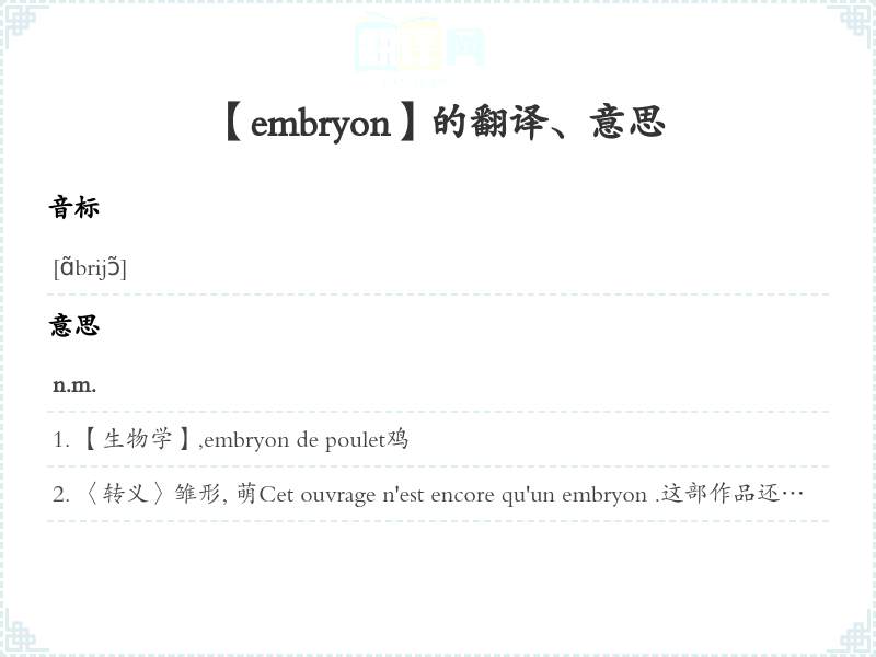 【embryon】是什么意思、字义解释