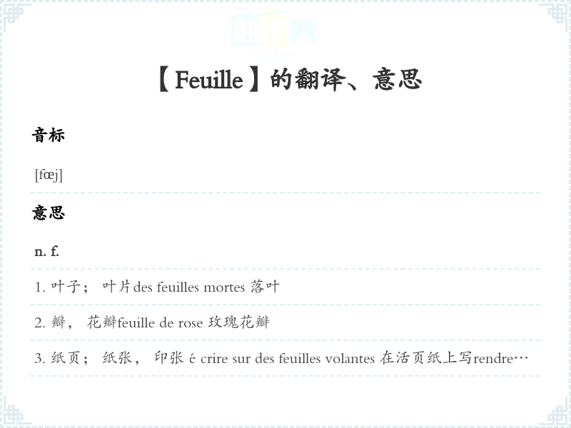 【Feuille】是什么意思、字义解释
