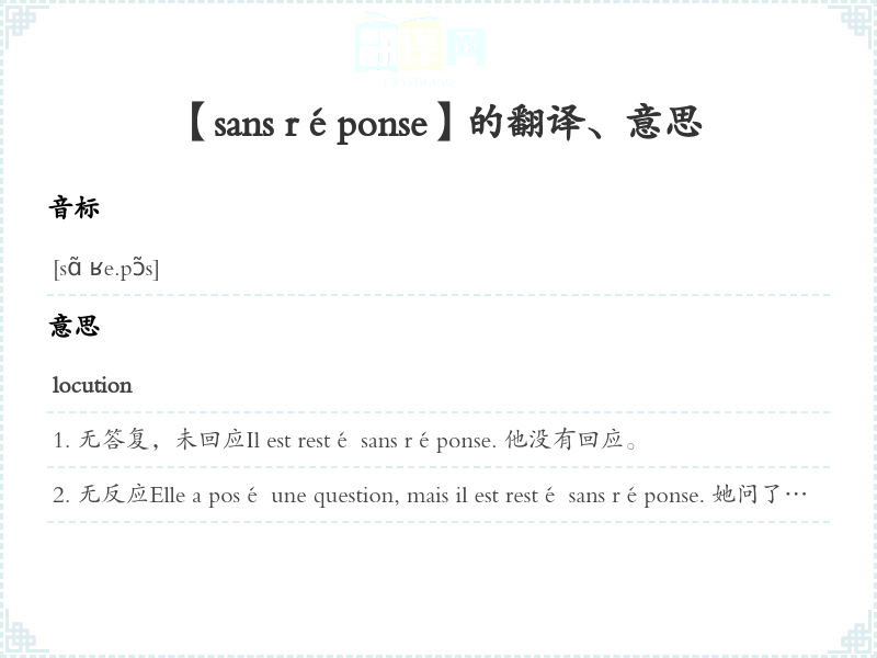 【sans réponse】是什么意思、字义解释